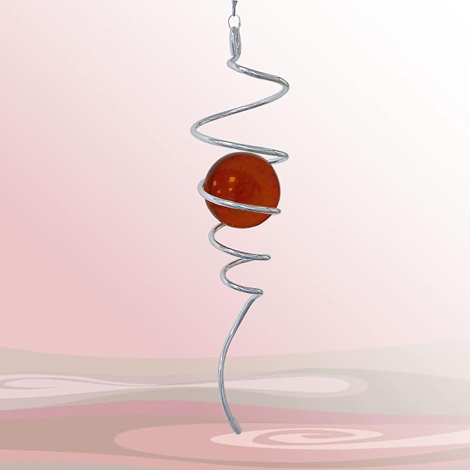 - 【Easy To Position】The Spiral can't spin by itself ,if you want to make it spin like the video ,need add 1pc motor (not include) ,or combine it with a wind spinner or any rotatable hanging ornament to help it rotate. Come with 1pc 2 inch colored glass orb(not paint), 1pc silver color spiral tail twister,and 1pc swivel hook accessory, ready to hang and enjoy.