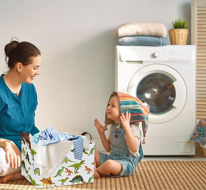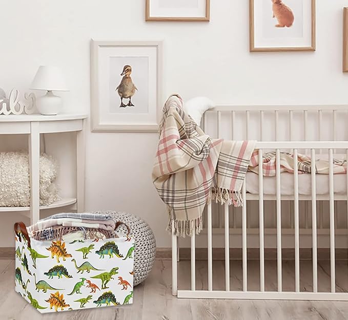 HIYAGON Rectangular Dinosaur Basket Baby Kids Storage Basket for Boys Cute Toy Box Bin Organizer Book Shelf Dinosaur Room Decor(Toy Dinosaur)