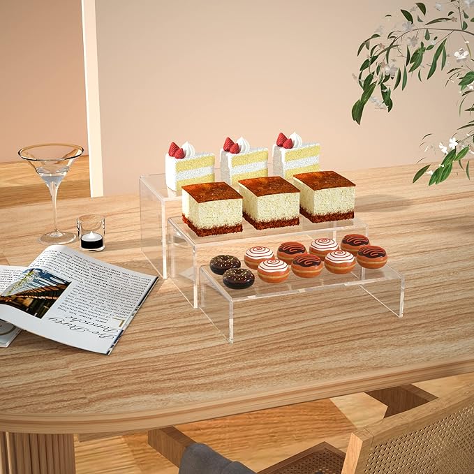 - Wide Application: The acrylic display risers can be used for so many items display. It can be used for Amiibo Funko Pop Figures collectibles, toys organizer, cupcake stand for your home or party. It can be used for displaying perfumes, cosmetics, bags, shoes, sun glasses, jewelrys, wallets in retails or vendors.