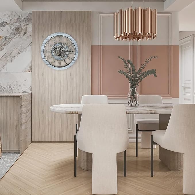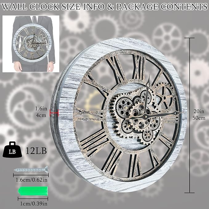 HOIBAI Wall Clock, Clocks for Living Room Decor 20 Inch Big Moving Gears Clock Farmhouse Vintage Rustic Wall Clock for Home Bedroom House Kitchen Wall Decor
