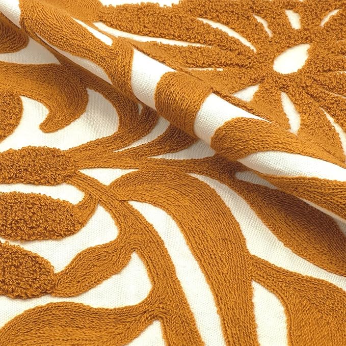 Alysheer Farmhouse Floral Leaves Embroidered Decorative Throw Pillow Cover 18x18 inches, Boho Tufted Flowers Embroidery Pattern Chic Cotton Cushion Case for Couch Bed Sofa Living Room(Mustard Yellow)
