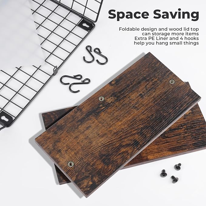 - Stackable & Wall-mounted Metal Basket: Our hanging basket not only can stackable or countertop tiered use, but also can hang in the wall to maximize save your space. fruit and veggie storage wood lid top add more storage room to put some small things like seasoning jar, magazine, office supplies, toiletries for bathroom etc