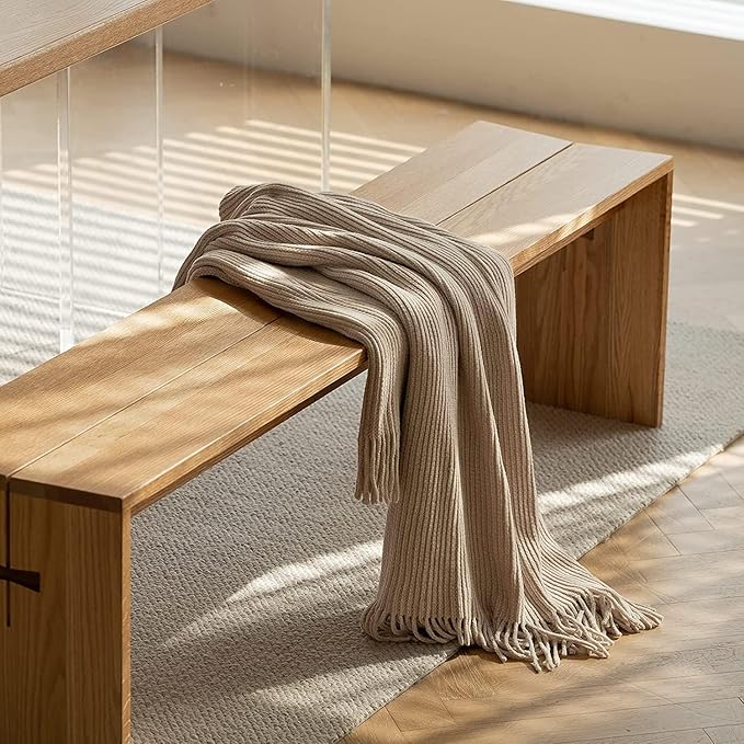 lifein Throw Blanket for Couch, Soft Boho Decor Bed Throw,Cozy Beige Knitted Chenille Small Farmhouse Lightweight Throw for Spring(Beige,60 * 80")