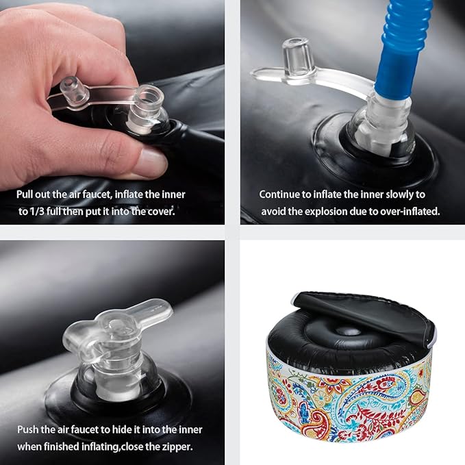 - 【Inflatable & Portable Design】-Designed with double string piping and wide handle, zipper closure on the bottom of the ottoman cover, lightweight easily folded for storage and carry. They can be used in many different settings and can provide a comfortable and versatile seating option wherever you need it.Also a good ideal for travel,camping or home,etc.