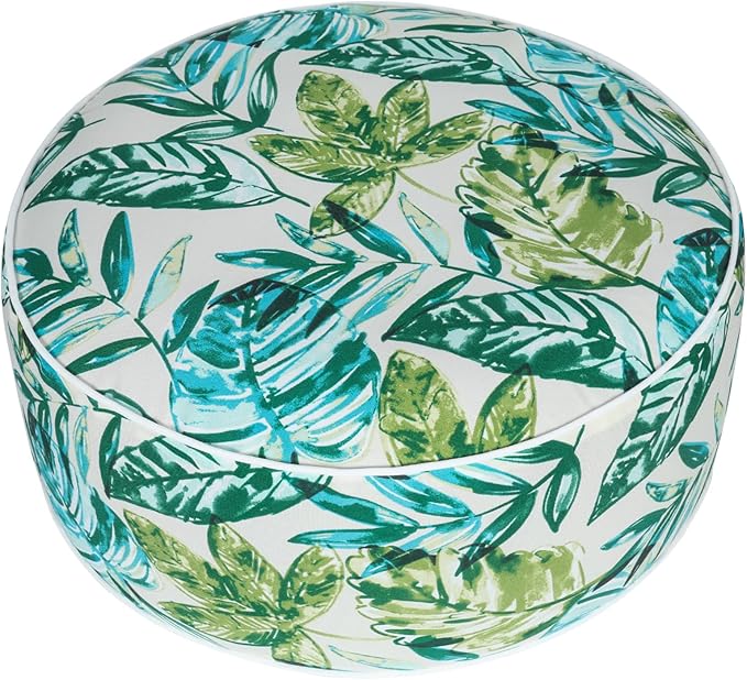 FUNHOME Inflatable Outdoor Ottoman with Air Pump,20"x9" Portable Patio Pouf,Water Resistant,Fade-Resistant,Round Blow Up Footrest Stools for Home Garden Camping Travel(Palm Leaf)