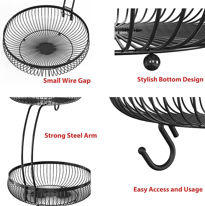 Simple Houseware 2-Tier Countertop Fruit Basket with Banana Hanger, Black