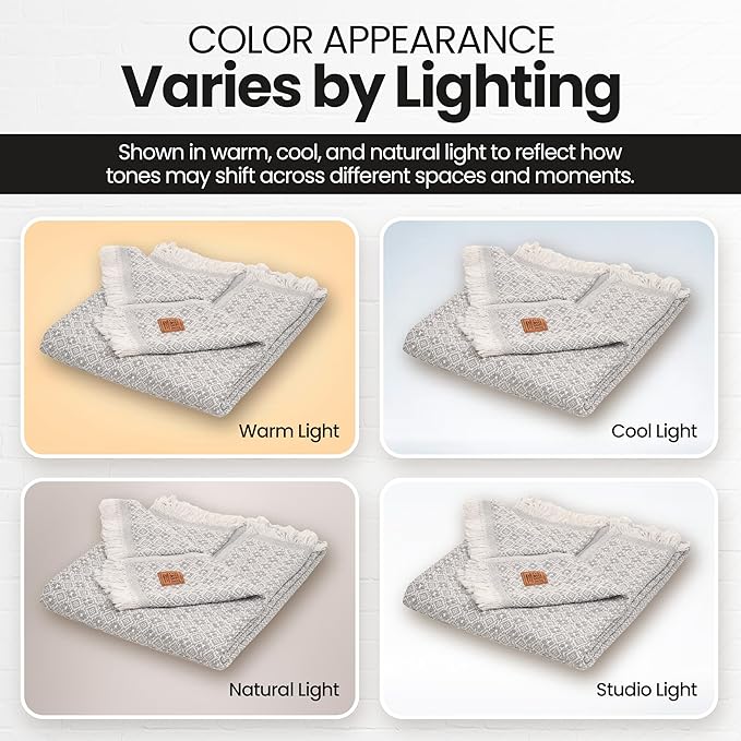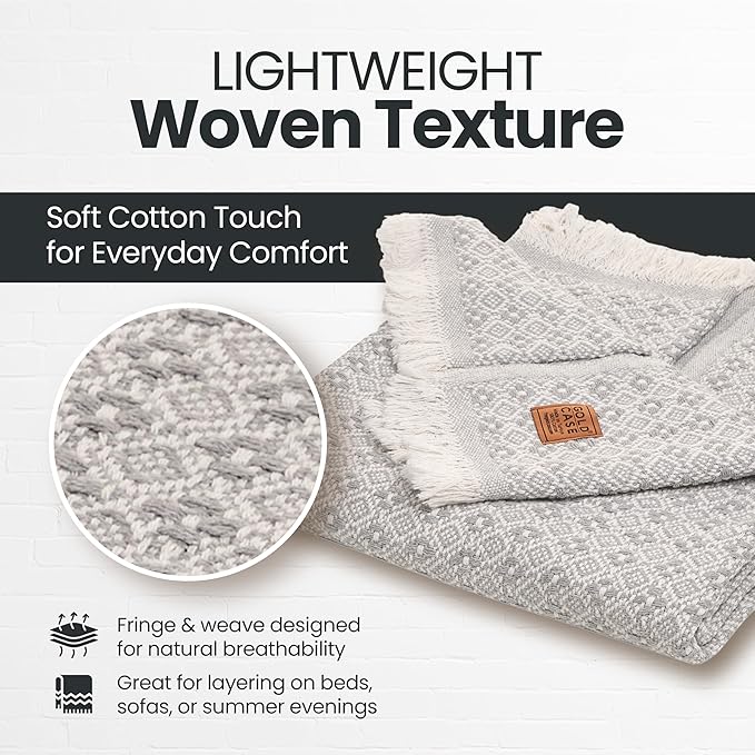 - LIGHTWEIGHT LAYERS FOR RELAXED MOMENTS: Woven from 100% recycled Turkish cotton, this breathable and cute throw blanket adds a soft, textured touch to your space; made for layering on the couch, tossing over your shoulders, or adding a laid-back look to your decor