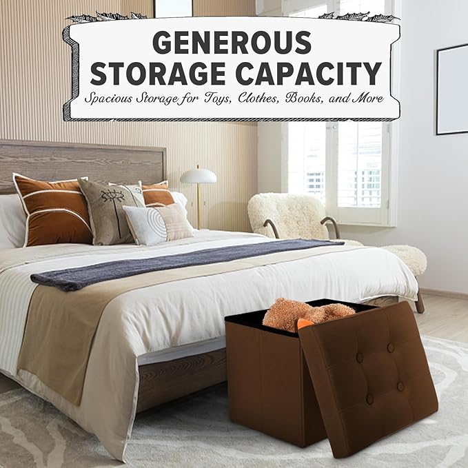 - 【Magical Space】 17 * 13 * 13-inch multifunctional storage stool, cleverly crafted, effortlessly slims down to 17“L x 13” W x 2.5“H – it's like a folding magic space! Maximize the liberation of your space, effortlessly blend into compact living spaces, and flexibly arrange various occasions, injecting more convenience and aesthetic appeal into your personalized space