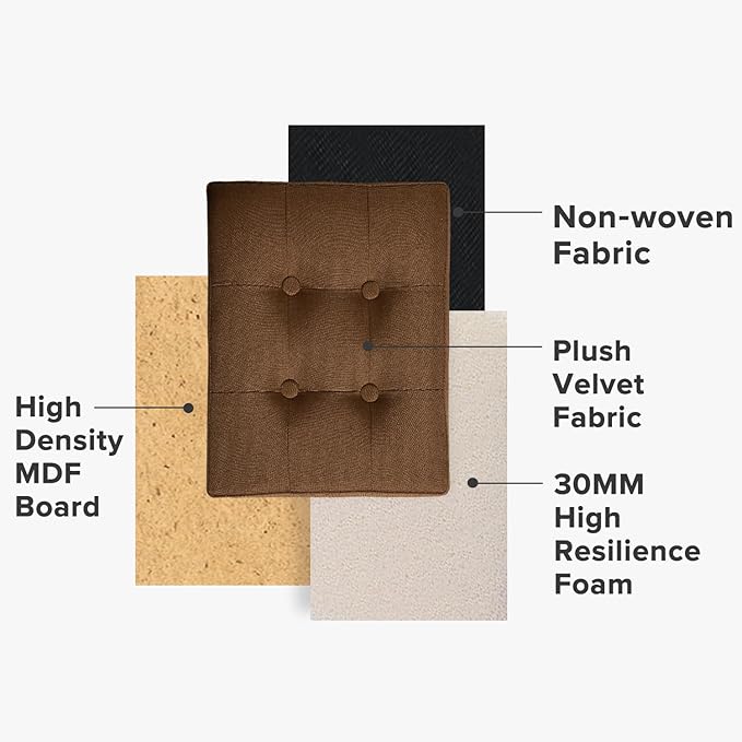 LINMAGCO Storage Ottoman Folding Foot Stool Foot Rest with Side Pocket Modern Ottoman with Storage Short Sofa Stool Linen Cloth 17x13x13(Brown)
