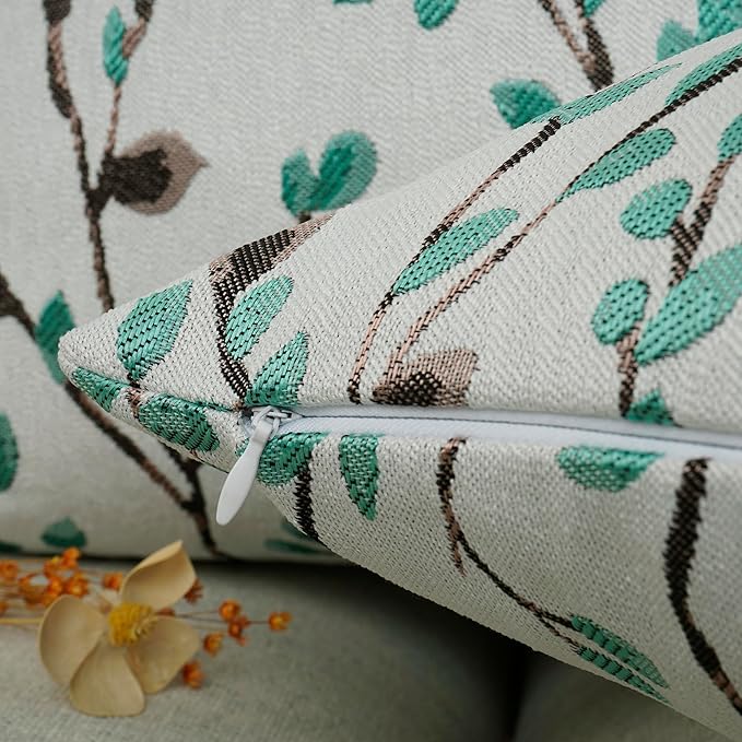 YOUR SMILE Classical Embroidery Jacquard Green Square Decorative Throw Pillow Case Cushion Cover 18x18 inch