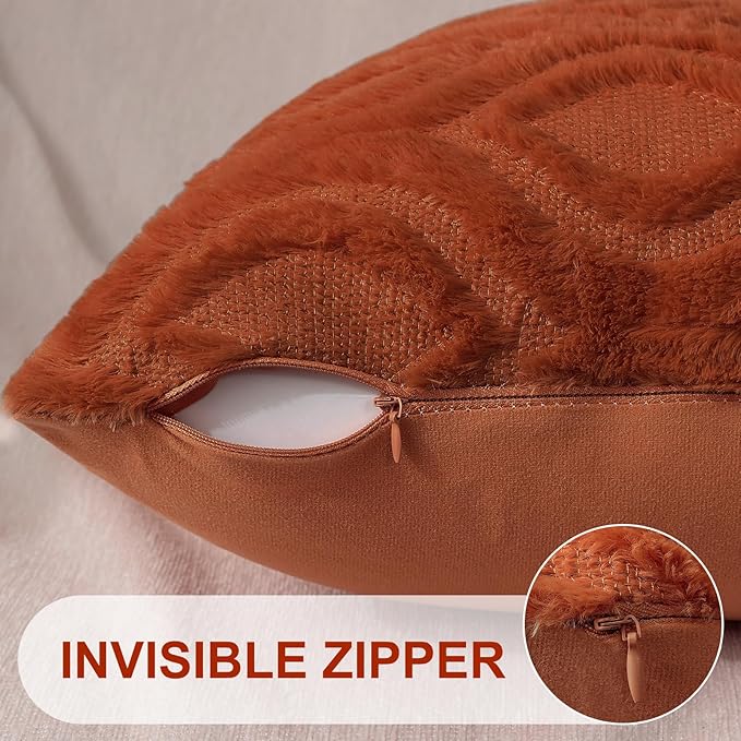 decorUhome Fall Throw Pillow Covers 24x24 Inch Set of 2, Soft Plush Decorative Faux Fur Rust Solid Couch Pillow Covers, Accent Farmhouse Neutral Square Euro Pillow Cases for Sofa Bed Living Room