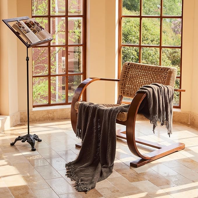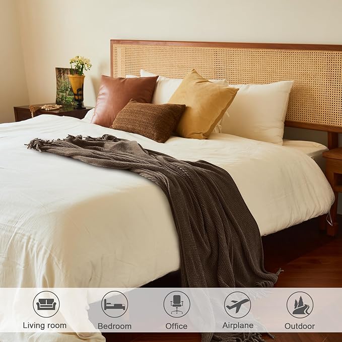 lifein Throw Blanket for Couch, Soft Boho Decor Bed Throw,Cozy Brown Knitted Chenille Small Farmhouse Lightweight Throw for Spring(Brown,50 * 60")