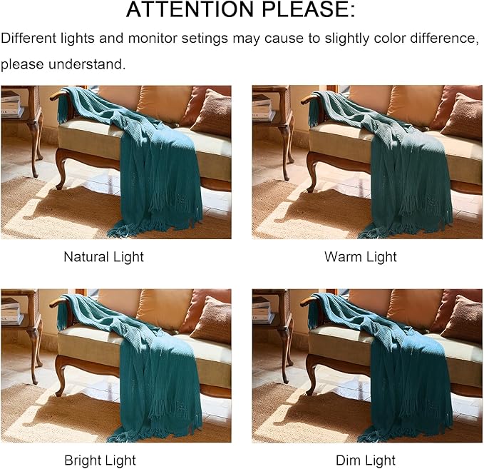 lifein Throw Blanket for Couch, Soft Boho Decor Bed Throw,Cozy Teal Knitted Chenille Small Farmhouse Lightweight Throw for Spring(Teal,50 * 60")