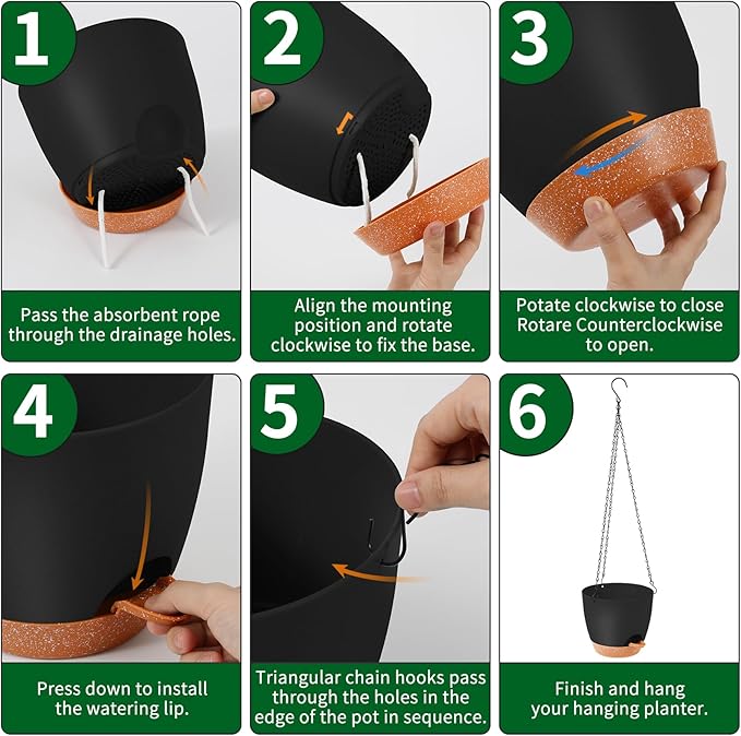 GARDIFE Hanging planters for Indoor Plants, 8 inch Hanging Planter, Self Watering Plant Pot, 2 Pack self Watering Hanging Planter, Black