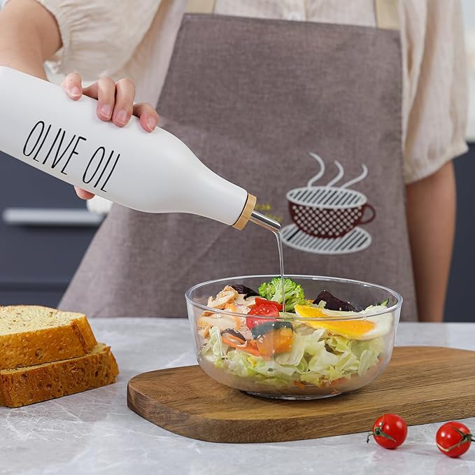 - MODERN FARMHOUSE DESIGN - Worthy of sitting on your kitchen counter, The olive oil bottle dispenser for kitchen printed the beautifully Olive Oil and Vinegar label which can help you identify them easily, both decorative and practical, this vinegar and oil dispenser bottles not only kitchen oil dispenser, but also farmhouse kitchen décor.