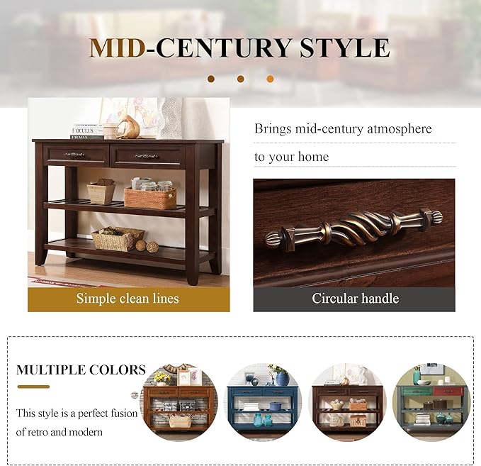 - 【Retro Sofa Table】The console table 42 "Lx 13.78"W x 30 "H.Solid Wood Sideboard Console Table features a retro design that adds a touch of vintage charm to your living room, foyer, or dining room. Its classic aesthetic enhances the overall ambiance of your space.