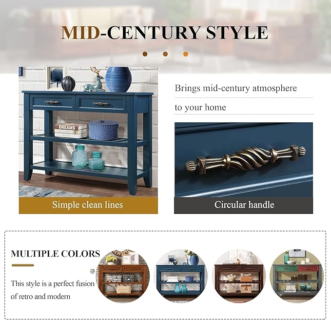 Solid Wood Console Table Entryway Table with Storage Drawers and Shelves Sofa Table for Entry Hallway Foyer(42" Navy Blue)