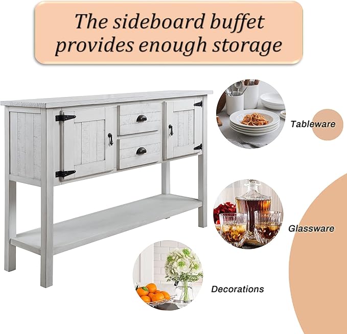 - 【Retro Sofa Table】The console table 48 '' L* 14 '' W*34'' H .Solid Wood Sideboard Console Table features a retro design that adds a touch of vintage charm to your foyer, entryway, or dining room. Its classic aesthetic enhances the overall ambiance of your space.