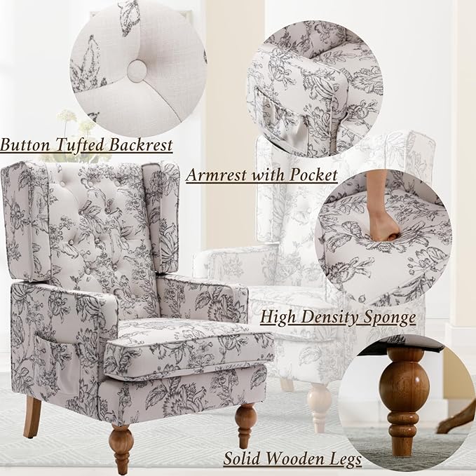 - Comfy Armchair: The hand-picked fabric armchair have the advantages of good permeability and comfort. Upholstered seat cushion and backrest filled with high density sponge are soft and full of elasticity.