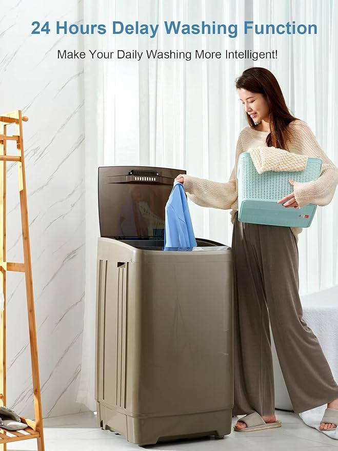 - 👕【Large Wash Capacity&Compact Design】This full automatic washing machine is equipped with a stainless steel honeycomb-shaped inner tub, which can load 17.7 pounds at a time, and can wash many different types of clothes for you, completely freeing your hands. Suitable for dorms, apartment.