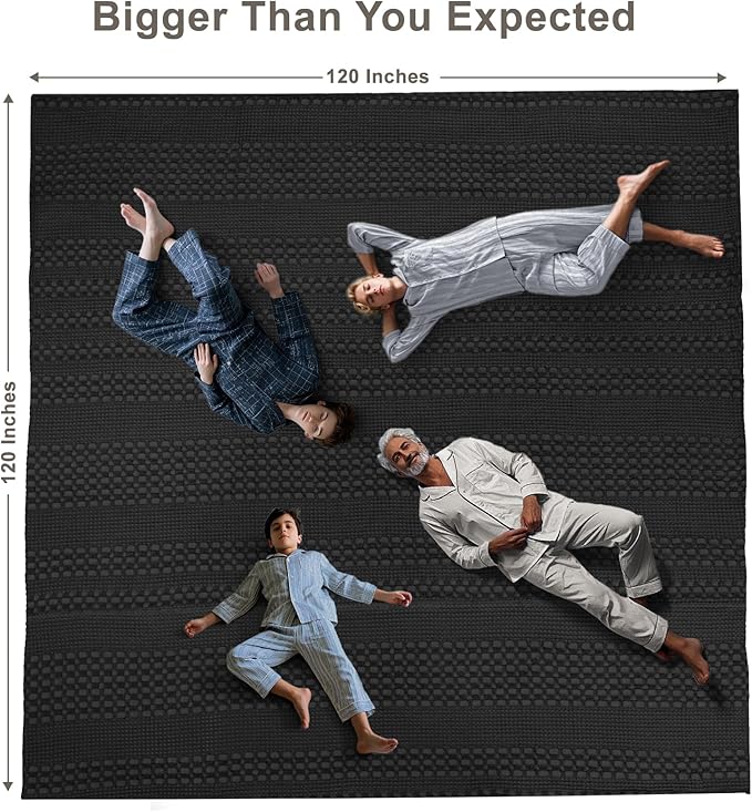 PHF 100% Cotton Waffle Weave Blanket Oversized King for Bed 120"x120"- Giant Big Lightweight Blanket 10'x10' for Bed Sofa - Aesthetic Extra Large Washed Cotton Soft Blanket - Black