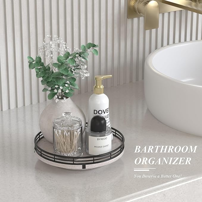 - πππππππππ πππ: This lazy susan is enough to be used nearly anywhere, perfect in the bathroom, bedroom, laundry room, office, etc. Keep your bathroom counter organized with this bathroom tray for toiletries, lotion, washcloth, cotton swabs, soap and scrubber. Using a bathroom vanity tray to keep all your daily skin care and makeup. On the bedroom counter, ideal to organize perfumes. Good idea for the office desk and craft room to organize. Keep your coffee stuff perfect at your coffee station.