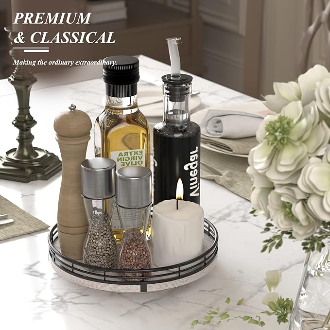 - πππΒ°ππππππππ: The base is made of solid wood, and the spinning mechanism is made of steel ball bearings, which are well-built and allow for 360Β°smooth spinning. This Lazy Susan organizer is very attractive and very easy to use to keep your spices, condiments, and more organized and accessible.