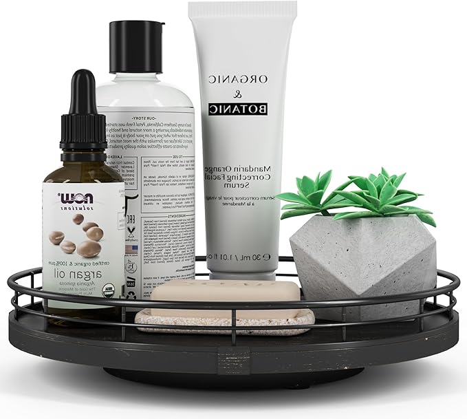 - πππππππππ πππ:This lazy susan is enough to be used nearly anywhere, perfect in the bathroom, bedroom, laundry room, office, etc. Keep your bathroom counter organized with this bathroom tray for toiletries, lotion, washcloth, cotton swabs, soap and scrubber. Using a bathroom vanity tray to keep all your daily skin care and makeup. On the bedroom counter, ideal to organize perfumes. Good idea for the office desk and craft room to organize. Keep your coffee stuff perfect at your coffee