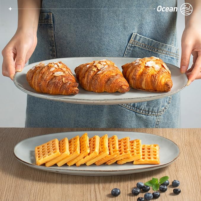 - Sturdy and Enduring: Ocean Series serving platters for entertaining is made of premium stoneware, which is fired by high temperature and mix of all-natural clays. Each piece of the serving plates is sturdy and enduring.