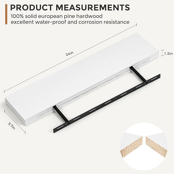 - Excellent Storage & Décor - Each board measures 24"L x 5.7"W x 1.3"H, hold up to 50 lb. This floating shelf taking up zero square feet, reduces clutter and highlights décor in compact spaces. It can help make full use of the empty wall, which is much more space-saving and makes your room look larger and tidier.