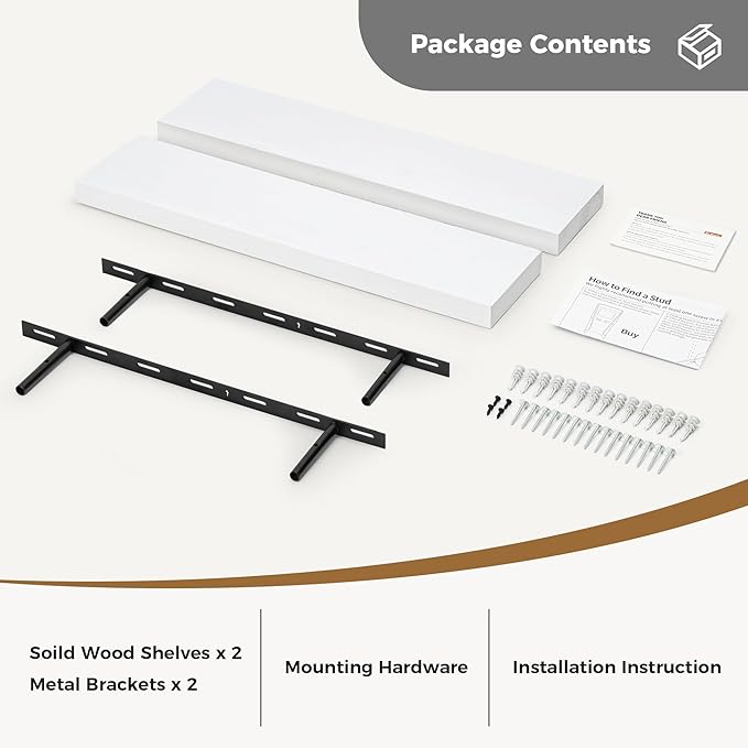 - Easy To Assemble - This floating shelves come with stainless-steel galvanized invisible brackets, toggle bolts for drywall & a simple instruction manual to help you install. The assembly of this wall shelf is very simple, only two boards and some necessary screws and other hardware, and we also have detailed instructions for you to view, you can assemble quickly. Please contact our product support team when you have any questions.