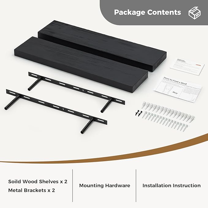 - Easy To Assemble - This floating shelves come with stainless-steel galvanized invisible brackets, toggle bolts for drywall & a simple instruction manual to help you install. The assembly of this wall shelf is very simple, only two boards and some necessary screws and other hardware, and we also have detailed instructions for you to view, you can assemble quickly. Please contact our product support team when you have any questions.