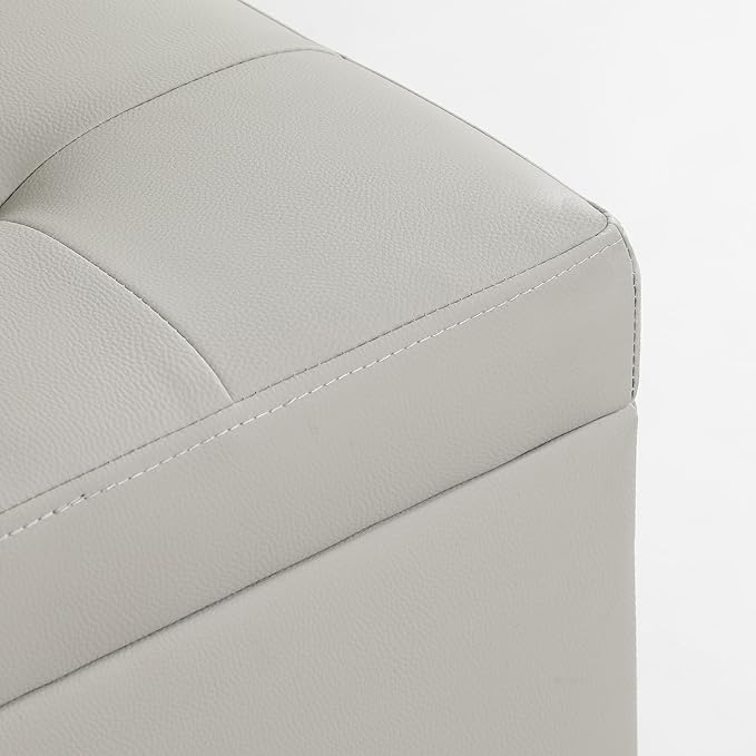 - Morden and Multi-functional Hidden Storage Piece - Featuring with simple elephant grey faux leather and cherry finish legs, ideal for bringing a chic and stylish touch to any room, great fit for your home decor, also works very well as footstool to ease your tired feet, small storage chest and additional seating for your guest.