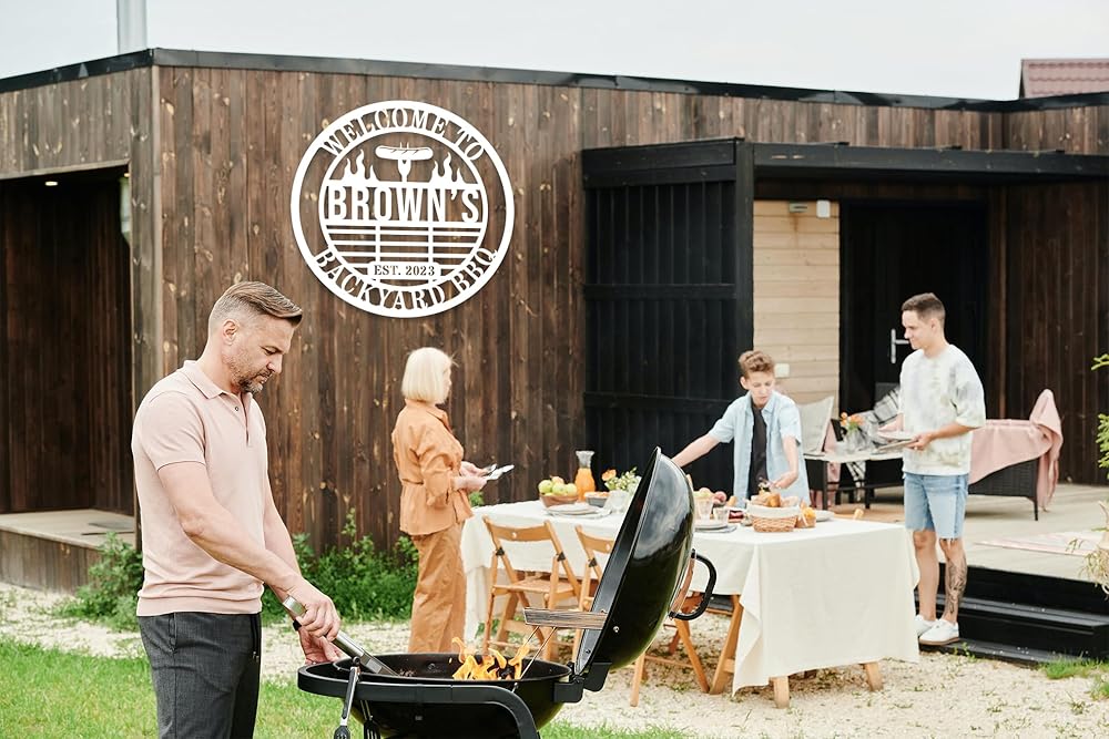 Personalized BBQ Grill Name Sign Custom Grill Sign Outdoor Kitchen Decor Grill Gifts for Dad Backyard BBQ Metal Sign BBQ Grill Sign Barbecue Outdoor Man Cave Decor