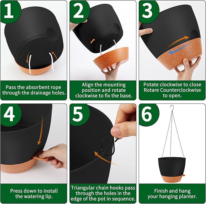 GARDIFE Large Hanging Planter, 12 inch Hanging planters for Indoor. Outdoor Plants, Self Watering Plant Pot, Plant Hanger, Black