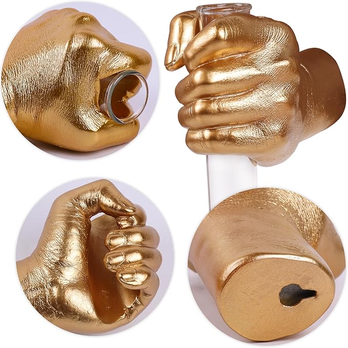 Gold Wall Sculptures, Hand Vases Home Decor, Wall Mount Art Sculpture, Unique Wall Art Statue, Funky Flower Vase Decorations, Modern Eclectic Hanging Decor,Glass Test Tube Vase