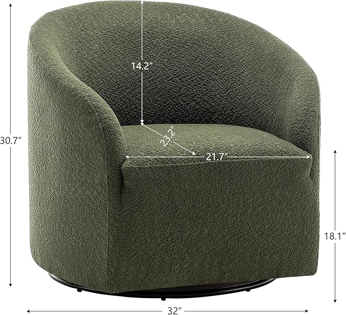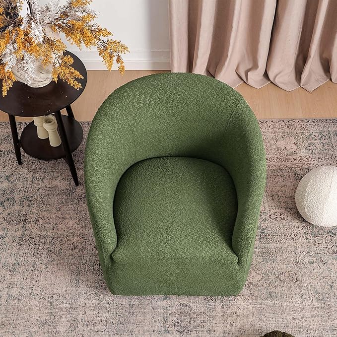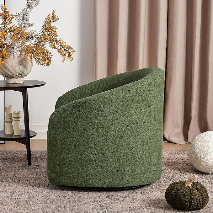KINWELL 32" Wide Modern Boucle Swivel Barrel Chair, No Assembly Round Upholstered Swivel Accent Armchair for Living Room, Bedroom, Office (Green)