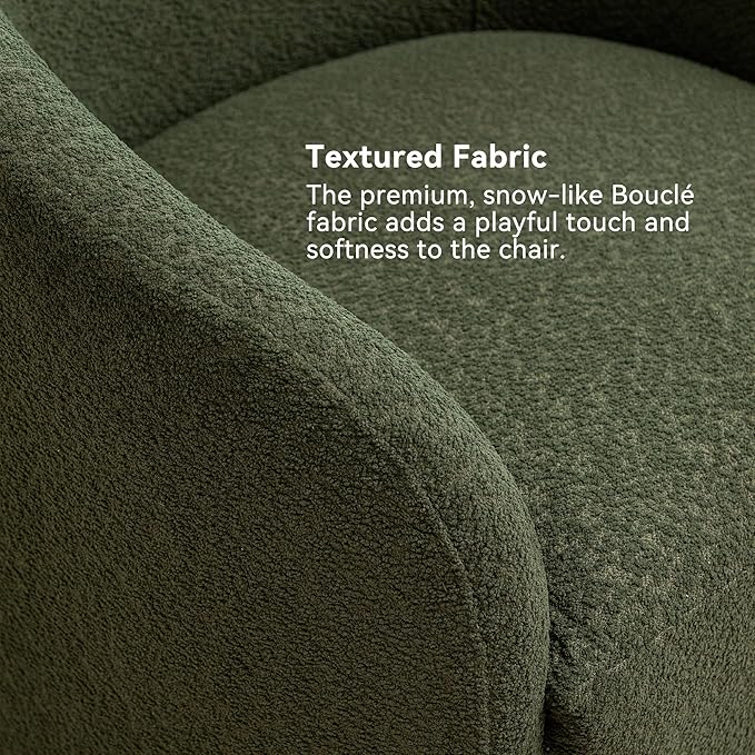 - Sturdy Base & Frame: The boucle chair's 360-degree swivel metal base allows for versatile and flexible seating options, and the frame of the swivel chair is made of sturdy solid wood. You can easily turn the chair to face different directions or turn towards different parts of the room without getting up.