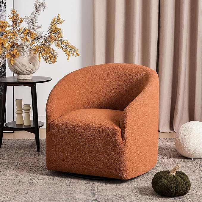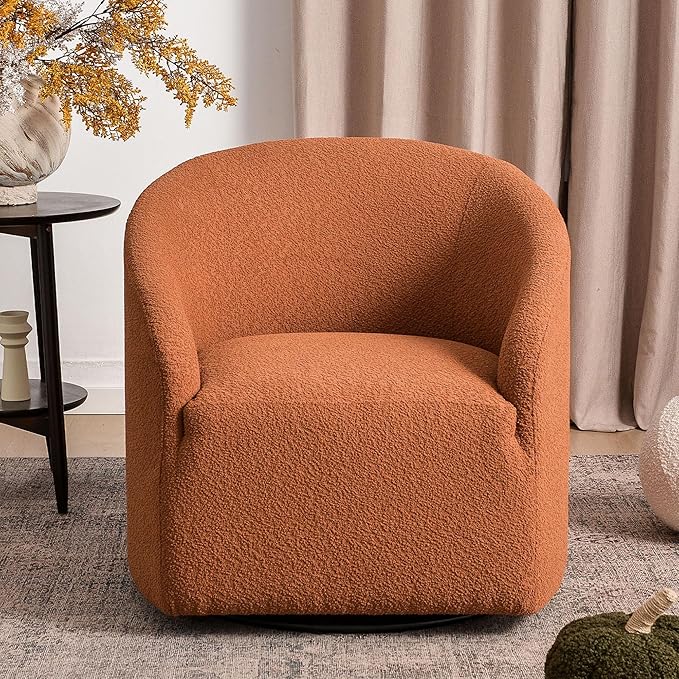- Mid-century Modern Design: A perfect blend of mid-century modern design and unparalleled comfort creates this unpickable swivel barrel chair. The elegant curved lines of the arm and its generous proportions ensure ample space for relaxation, making the accent chair an ideal decoration for any living room, bedroom, office, apartment, or lounge.