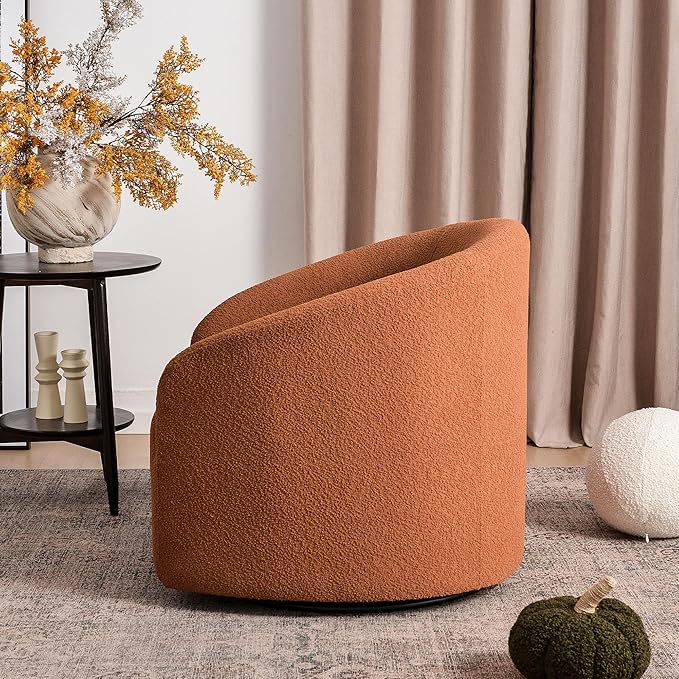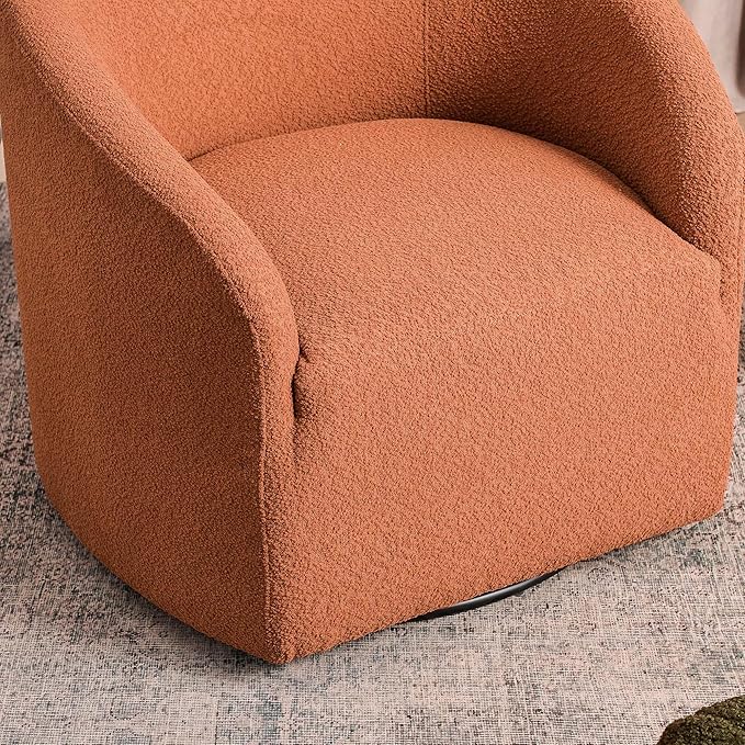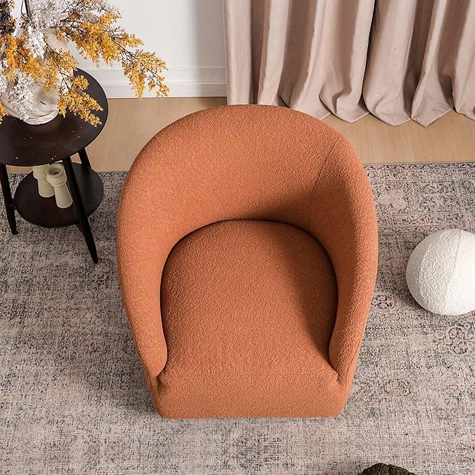 KINWELL 32" Wide Swivel Boucle Accent Chair Armchair, No Assembly Mid-Century Modern Round Upholstered Barrel Chair for Living Room, Bedroom, Office (Caramel)