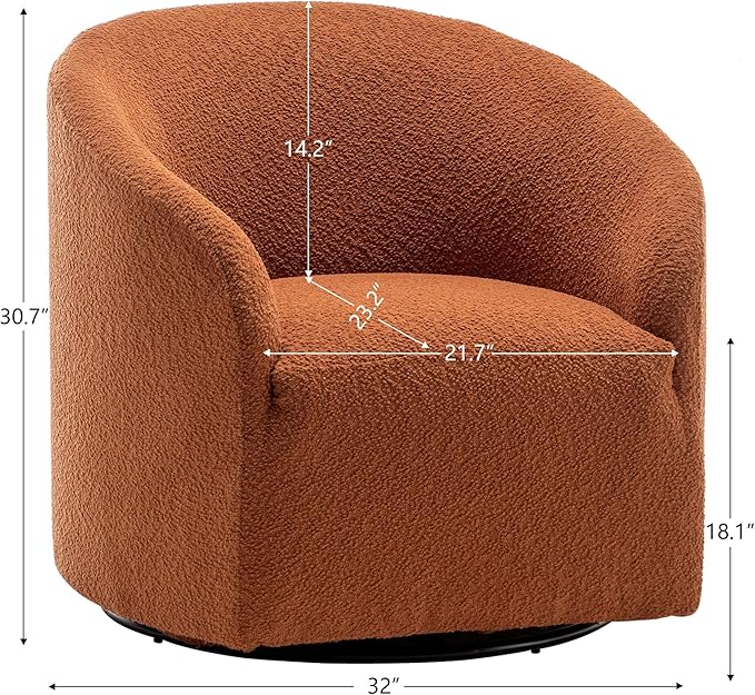 - Premium Boucle Fabric: The boucle upholstered swivel barrel chair is covered in a premium boucle fabric that not only looks great but also feels cozy and soft to the touch. The texture of the boucle fabric adds an extra layer of comfort to the chair, making it a great option for anyone looking for a comfortable seating option.