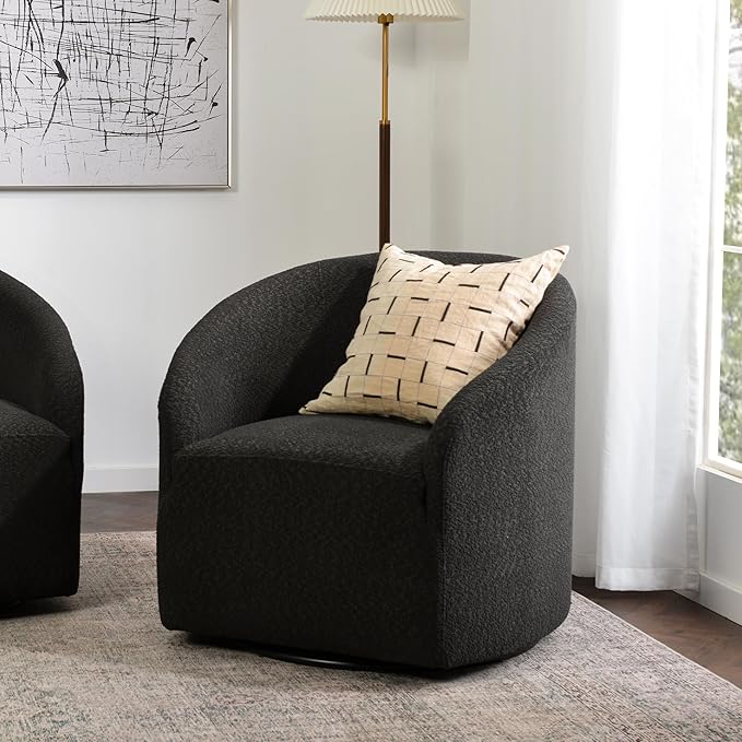 - Mid-century Modern Design: A perfect blend of mid-century modern design and unparalleled comfort creates this unpickable swivel barrel chair. The elegant curved lines of the arm and its generous proportions ensure ample space for relaxation, making the accent chair an ideal decoration for any living room, bedroom, office, apartment, or lounge.