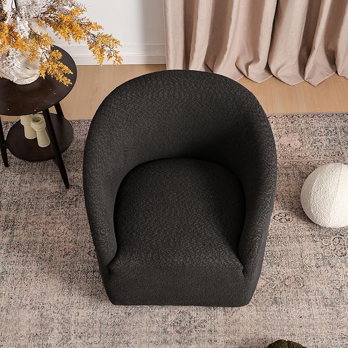 - Premium Boucle Fabric: The boucle upholstered swivel barrel chair is covered in a premium boucle fabric that not only looks great but also feels cozy and soft to the touch. The texture of the boucle fabric adds an extra layer of comfort to the chair, making it a great option for anyone looking for a comfortable seating option.