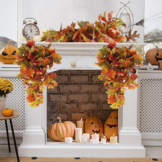 - [Perfect Fall Decor]Hanging maple leaves plants are the perfect decoration for autumn and Thanksgiving day,the fall maple leaf garlands can create a festival atmosphere for you home.Artificial hanging maple leaves plants can be applied to indoor and outdoor autumn decorations.