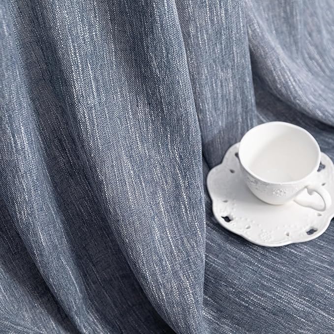 MYSKY HOME Floor Length Curtains Long Panels, Boho Curtains Farmhouse for Living Room Sliding Glass Door, Linen Look Texture Light Filtering, 50" x 95", Dusty Blue, Pack-2
