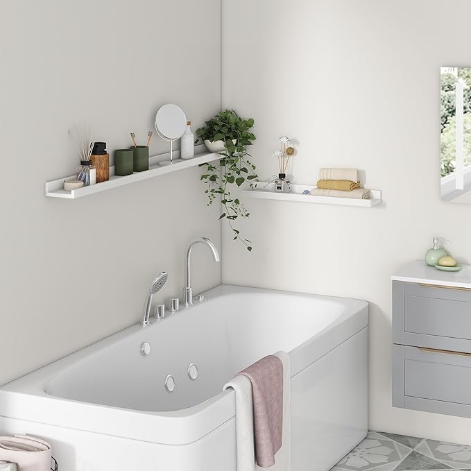 Picture Ledge Shelf for Wall, 48 inch Solid Pine Wood Nursery Book Shelves 2 Packs, Floating Ledge Shelves for Kids' Room Bedroom Bathroom Living Room Photo Frames Office Nursey Wall Decor, White