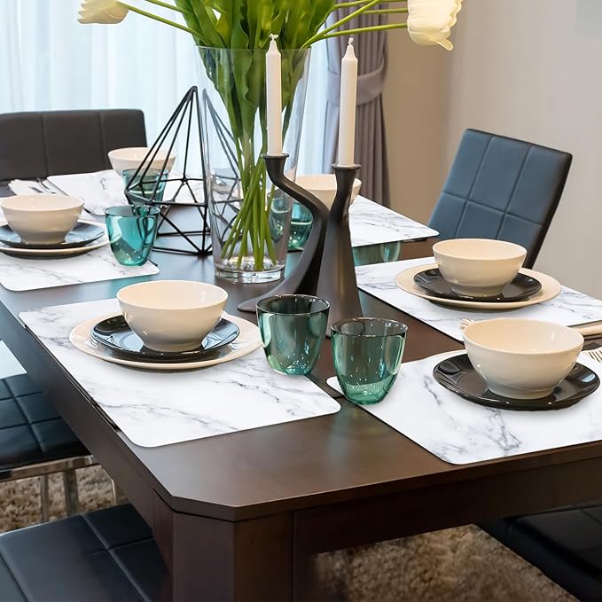 - 【Effortless Cleaning】Our marble plastic table mats are designed for easy cleaning, making them the perfect choice for your dining table. Unlike other placemats, these table mats can be effortlessly wiped clean with just a damp cloth. This not only saves you time but also ensures a hassle-free cleanup after your gathering.