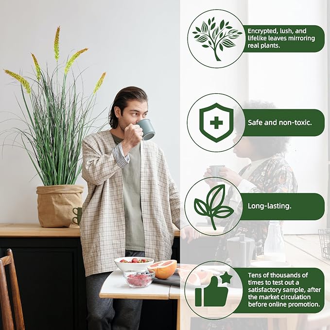 - 🌾UV RESISTANT AND LOW MAINTENANCE: Create a natural, vibrant atmosphere with this lifelike artificial tall grass indoor plants, outdoor plant pots with thick, almost natural artificial plant leaves neatly and naturally arranged to add a touch of realistic color to any space.