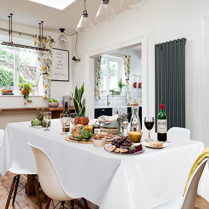 - MEASUREMENTS: This white table cloth is 60 inch wide and 84 inch long, perfect for standard 4 feet table, providing 18 inch drop.