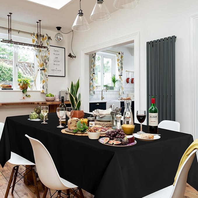sancua 10 Pack Black Tablecloth 60 x 84 Inch, Rectangle Table Cloth for 4ft Tables - Stain and Wrinkle Resistant Washable Polyester Table Cover for Dining Wedding Banquet Party Buffet Restaurant